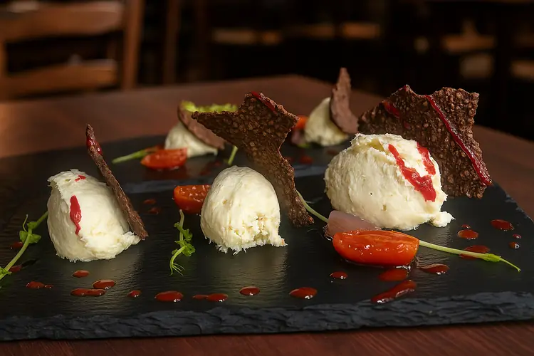 Baccalà mantecato, composta di cipolle di Tropea e chips di polenta € 24