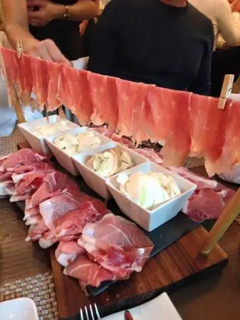 Selezione di 3 prosciutti crudi nazionali e tre tipologie di latticini: mozzarella di bufala, nodino di mucca e la nostra immancabile stracciatella.